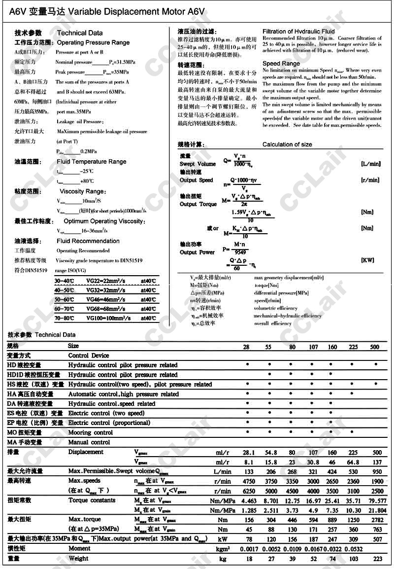 A6V500HD15FP1,A6V500HD25FP1,A6V500HS15FP1,A6V500HS25FP1,CCLair  A6V500HD15GZ2,A6V500HD25GZ2,