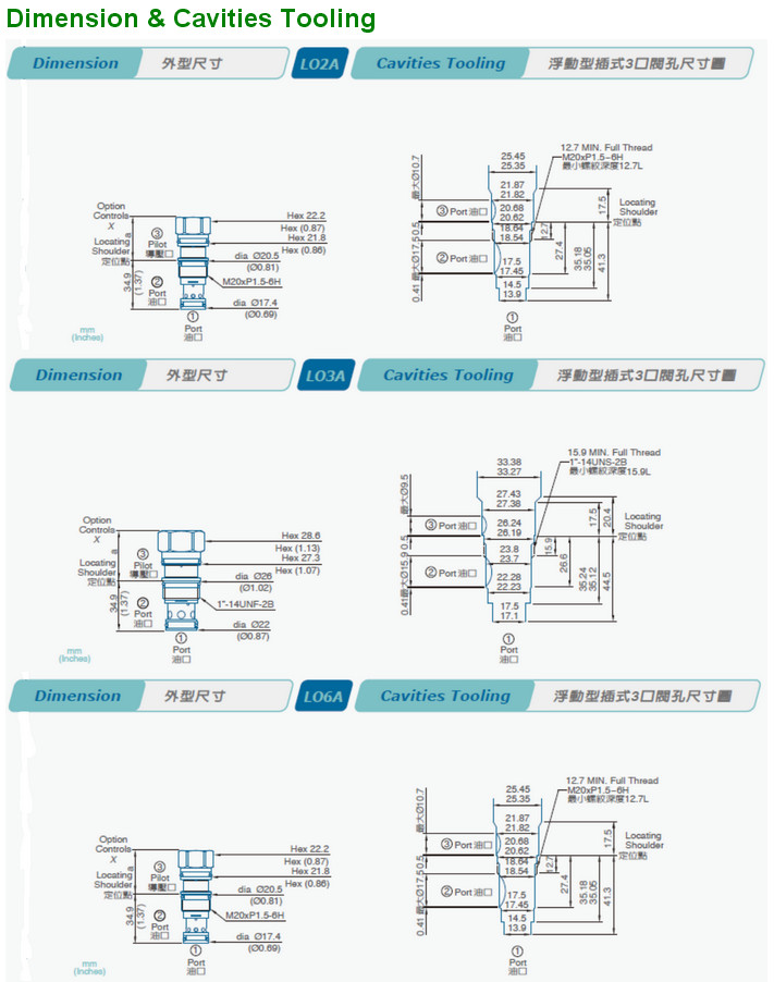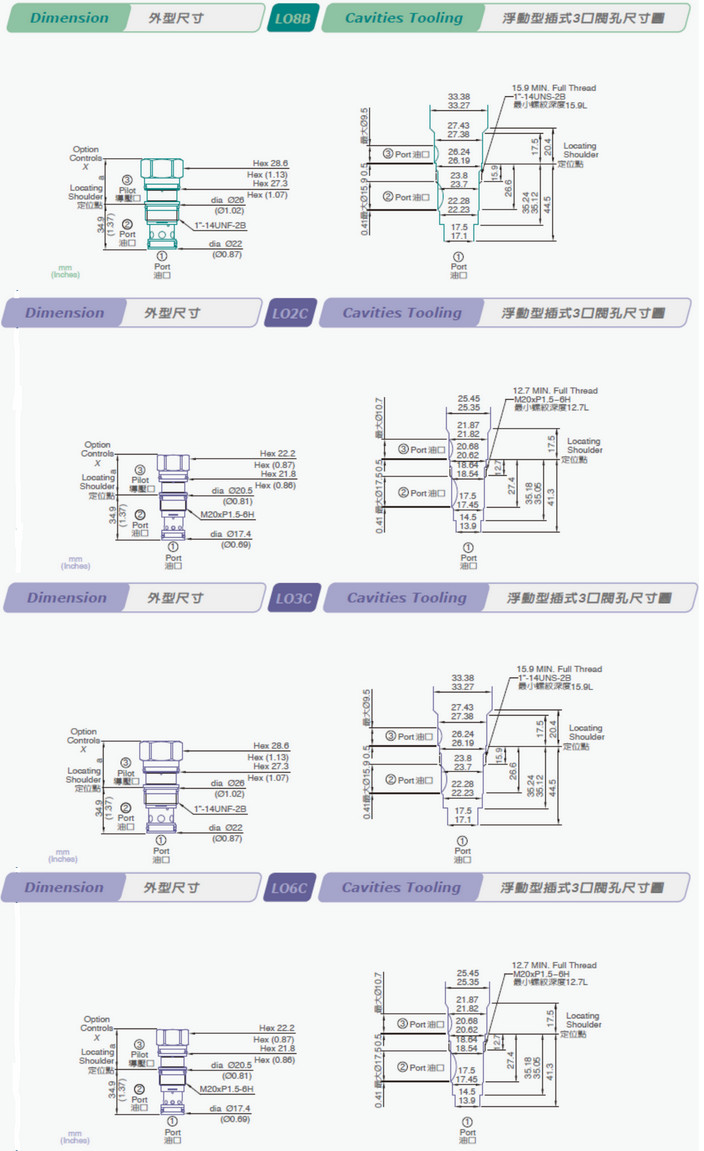 LO2A,LO2B,LO2C,LO3A,LO3B,LO3C,LO3D,LO3O,LO6A,LO6B,LO6C,LO6D,LO6O,LO8A,LO8B,LO8C,HYDROMAX插式常開型邏輯閥