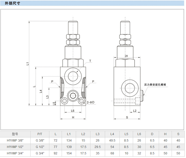 詳細(xì)信息 HYVMP 3/8",HYVMP 1/2",HYVMP 3/4",壓力溢流閥