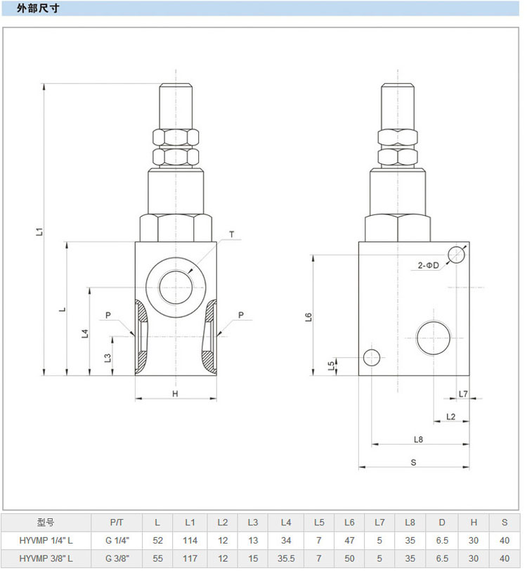 詳細信息 HYVMP 1/4" L,HYVMP 3/8" L,小流量溢流閥