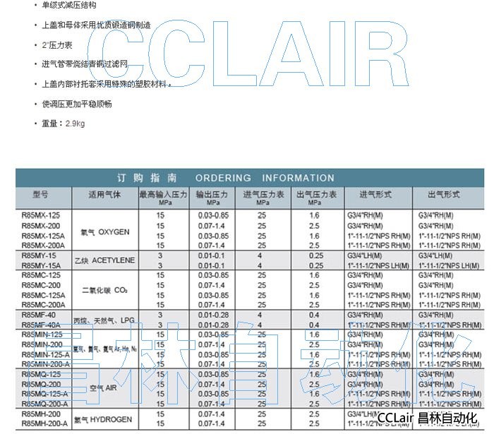R85MX-125,R85MX-200,R85MX-125A,R85MX-200A,氣瓶集合裝置用減壓器