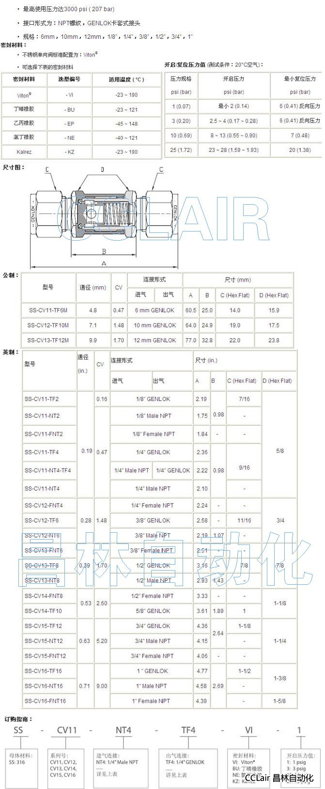 SS-CV11-TF2,無錫昌林,SS-CV11-NT2,SS-CV11-FNT2,SS-CV11-TF4,單向閥