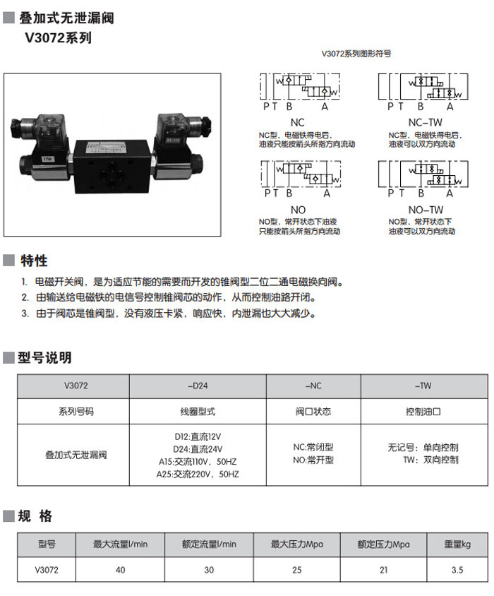 V3072-D24,V3072-D12,V3072-A15,V3072-A25,V3072-D24-NC-TW,V3072-A15-NO,疊加式無泄漏閥 詳細(xì)信息 V3072-D24,V3072-D12,V3072-A15,V3072-A25,V3072-D24-NC-TW,V3072-A15-NO,疊加式無泄漏閥