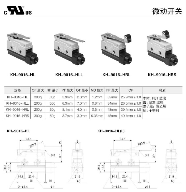 KH-9016-PBL,KH-9016-RP,KH-9016-CRP,KH-9016-HL,KH-9016-HLL,KH-9016-HRL,KH-9016-HRS,Koino微動開關(guān)