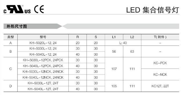 KH-5020L-12,KH-5030L-12,KH-5040L-12,KH-5020L-24,KH-5030L-24,KH-5040L-24,KH-5030L-24PCK,Koino LED集合信號(hào)