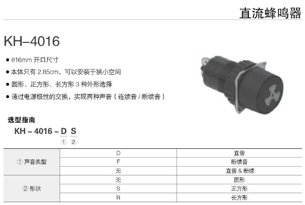 詳細(xì)信息 KH-4016,KH-4016-D,KH-4016-DS,KH-4016-DR,KH-4016-F,KH-4016-FS,KH-4016-FR,KH-4016-S,KH-4016-R,Koino直流蜂鳴器