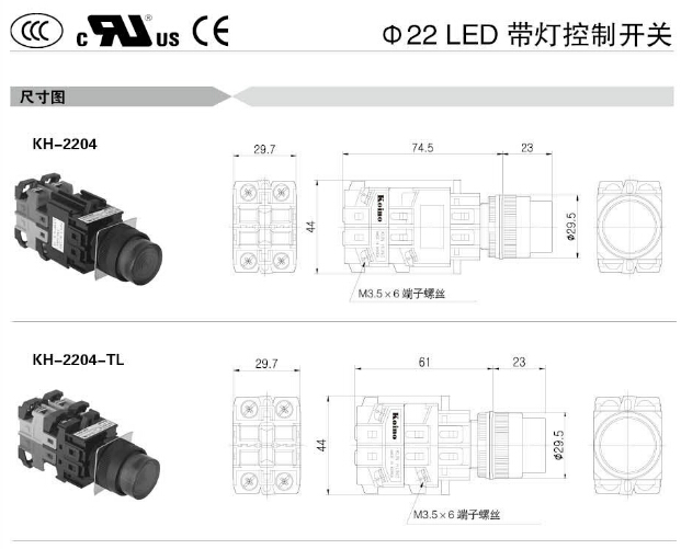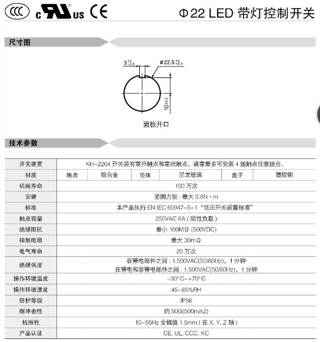 KH-2204,KH-2204-TL,KH-2204P,KH-2204P-TL,KH-2204EB,KH-2204EB-TL,KH-2204ER,KH-2204ER-TL,Koino Φ22帶燈控制開(kāi)