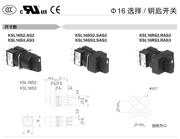 詳細(xì)信息 KSL16S2,KSL16AS2,KSL16S3,KSL16AS3,KSL16SS2,KSL16SAS2,KSL16SS3,KSL16SAS3,KSL16RS2,KSL16RAS2,KoinoΦ16選擇開關(guān)