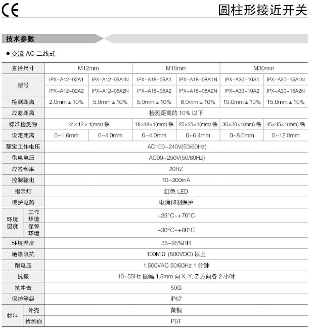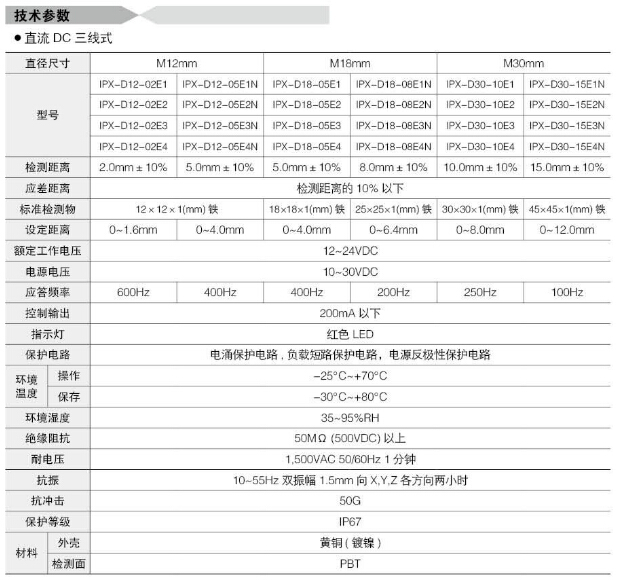 詳細信息 IPX-D12-06E1N,IPX-D18-08E1N,IPX-D30-10E1,IPX-2D12-02A1F,IPX-2D18-08A1NF,Koino圓柱形接近開關(guān)