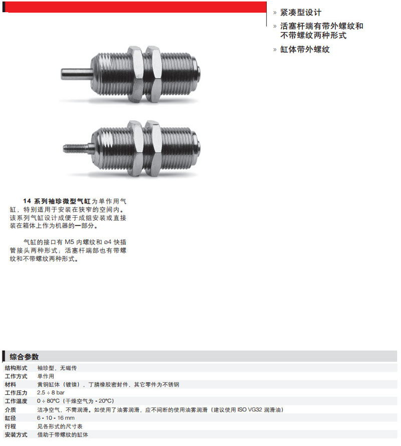 14N1A06A05,14N1A10A10,14N1A16A15,14N1M06B05,14N1M10B10,camozzi氣缸