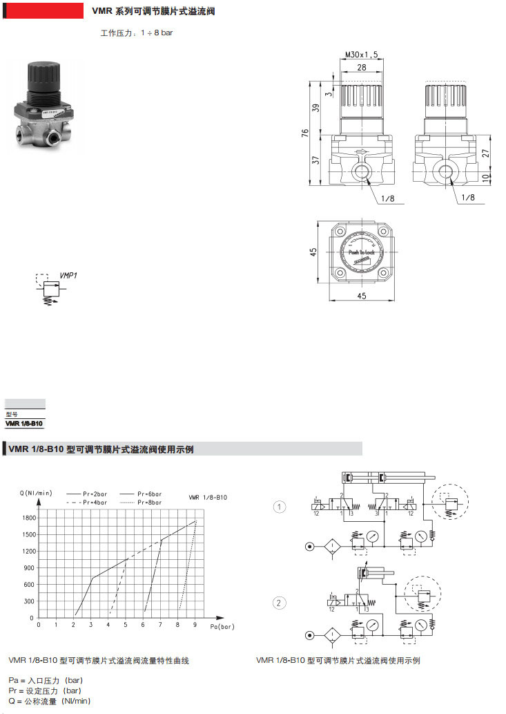 VMR1/8-B10,camozzi可調(diào)節(jié)膜片式溢流閥