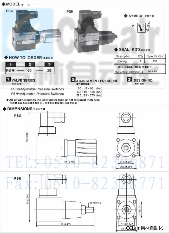 PSG-60-20,PSG-125-20,PSG-275-20,調(diào)整式壓力開關(guān),