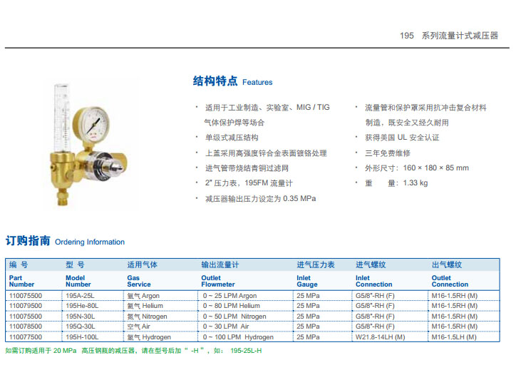 195A-25L,195He-80L,195N-30L,195Q-30L,195H-100L,流量計式減壓器
