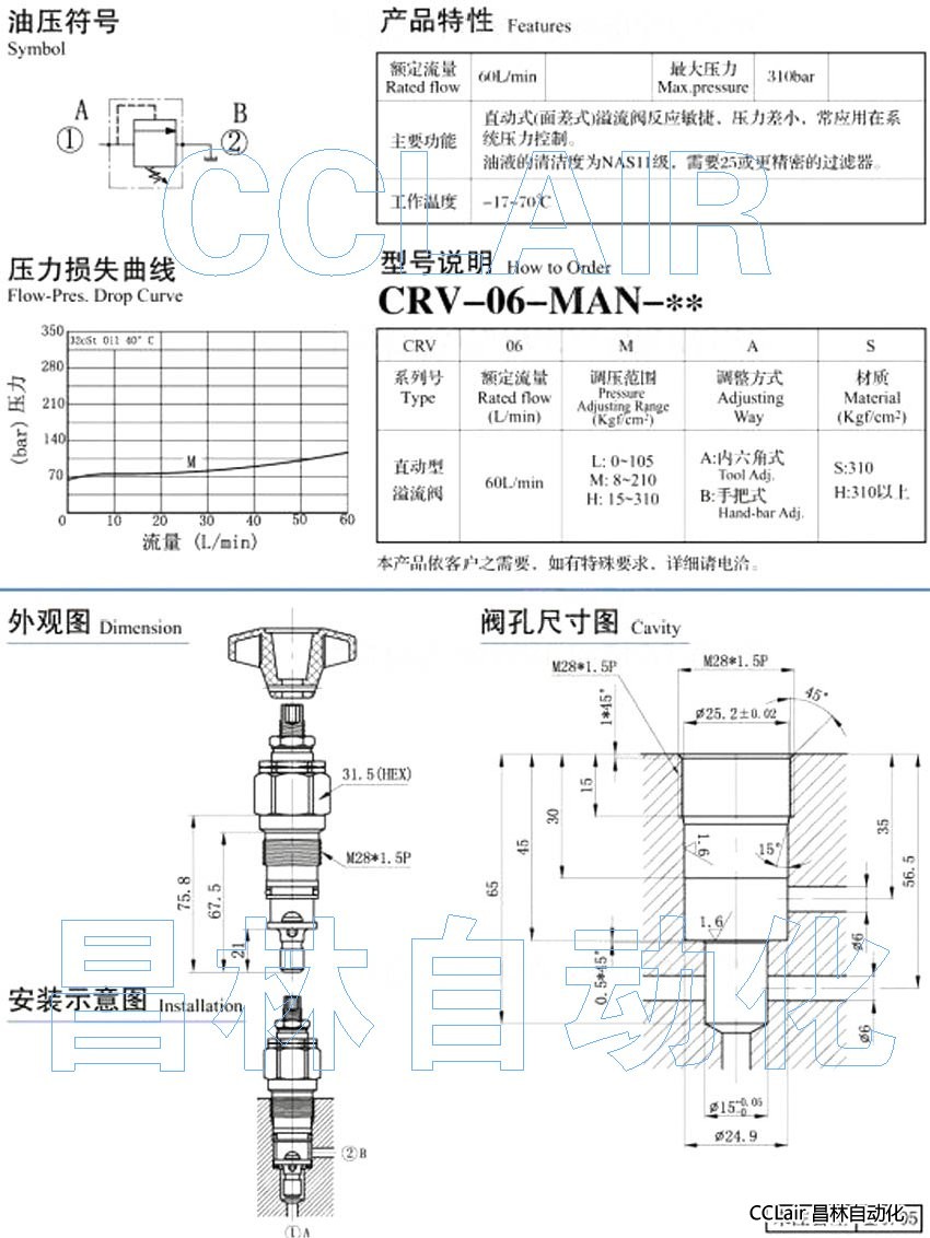 的詳細介紹CRV-06-LAN-S,CRV-06-MAN-S,CRV-06-HAN-S,CRV-06-LBN-S,CRV-06-MBN-S,直動溢流閥