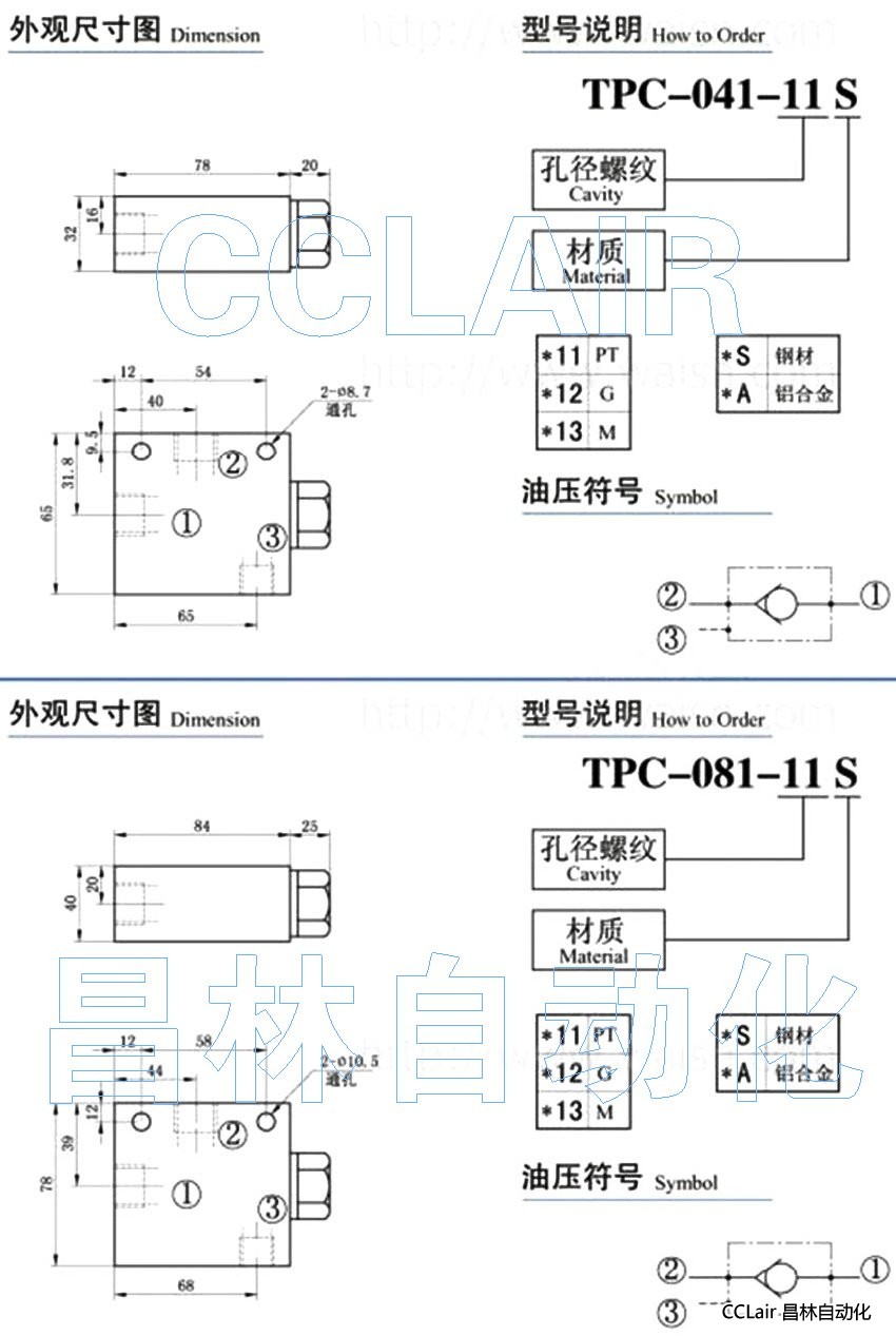 TPC-041-11S,TPC-041-12S,TPC-041-13S,TPC-041-11A,TPC-081-11S,TPC-081-12S,配管式液控單向