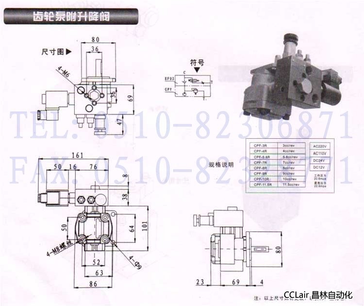 詳細信息 CPF-3R,CPF-4R,CPF-5.5R,CPF-7R,CPF-8R,CPF-9R,CPF-10R,CPF-11.5R,齒輪泵附升降閥