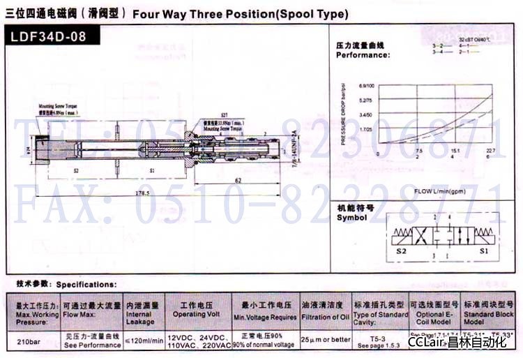 LDF34D-08,三位四通電磁閥