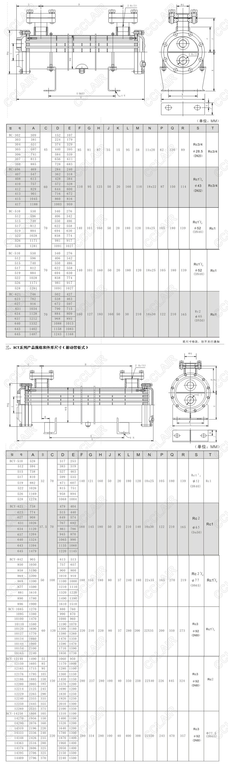 二、BC系列產(chǎn)品規(guī)格和外形尺寸(固定管板式)