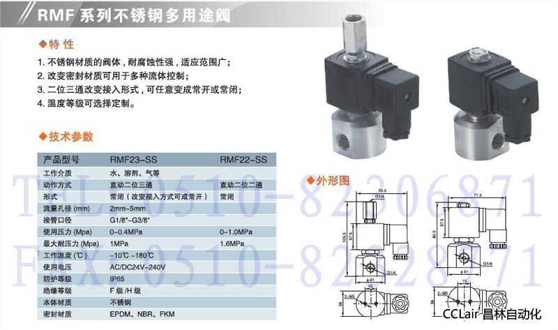 產(chǎn)品: 瀏覽次數(shù):505RMF23-SS,直動二位三通多用途閥