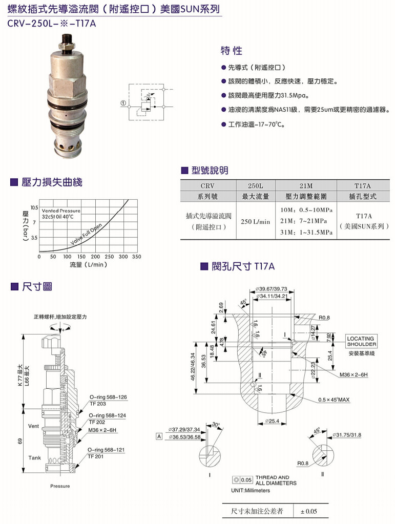 詳細(xì)信息 CRV-250L-10M-T17A,CRV-250L-21M-T17A,CRV-250L-31M-T17A,螺紋插式先導(dǎo)溢流閥
