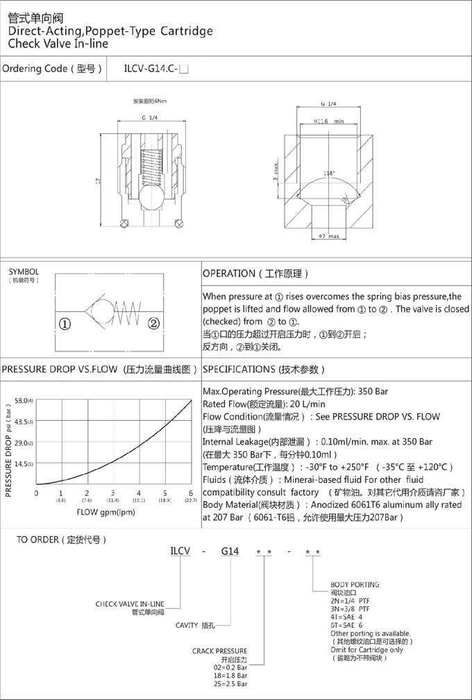 詳細信息 ILCV-G14.C-02,ILCV-G14.C-18,ILCV-G14.C-25,管式單向閥