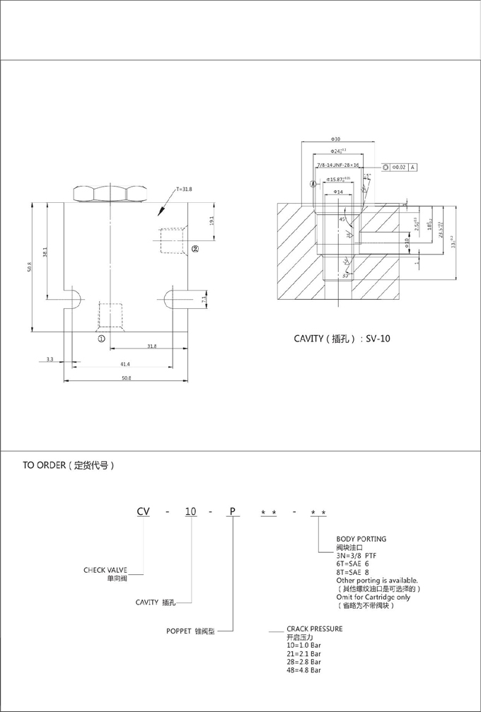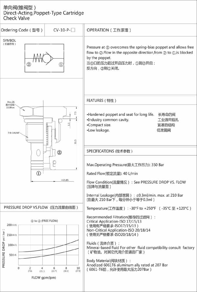 詳細信息 CV-10-P-10,CV-10-P-21,CV-10-P-28,CV-10-P-48,單向閥