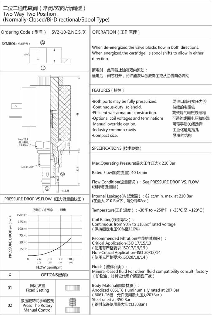產(chǎn)品: 瀏覽次數(shù):564SV2-10-2NCS,二位二通電磁閥