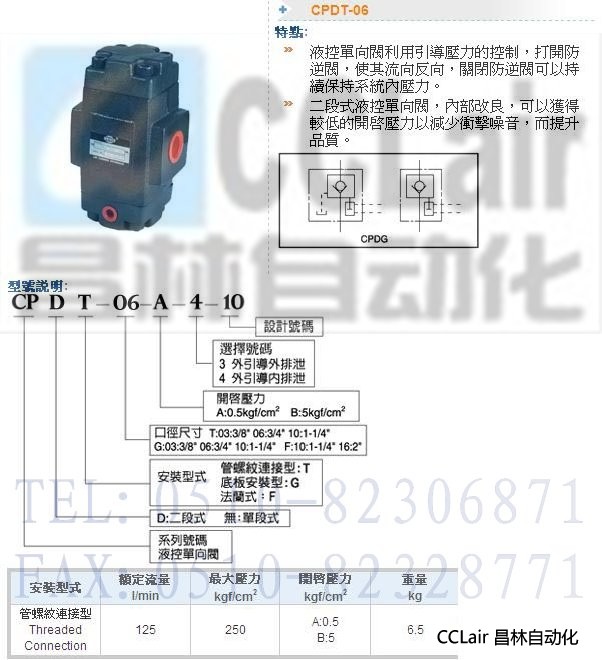 詳細信息 CPDT-06-A-4-10,CPDT-06-A-3-10,液控單向閥
