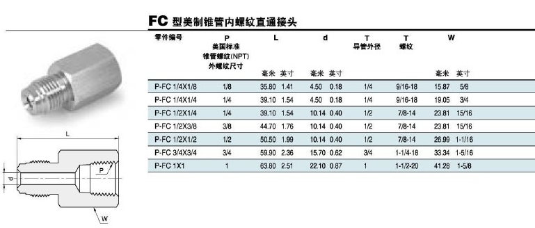 詳細信息 P-FC-1/4*1/8,P-FC-1/4*1/4,P-FC-1/2*1/4,P-FC-1/2*3/8,P-FC-1/2*1/2,錐管內螺紋直通接頭