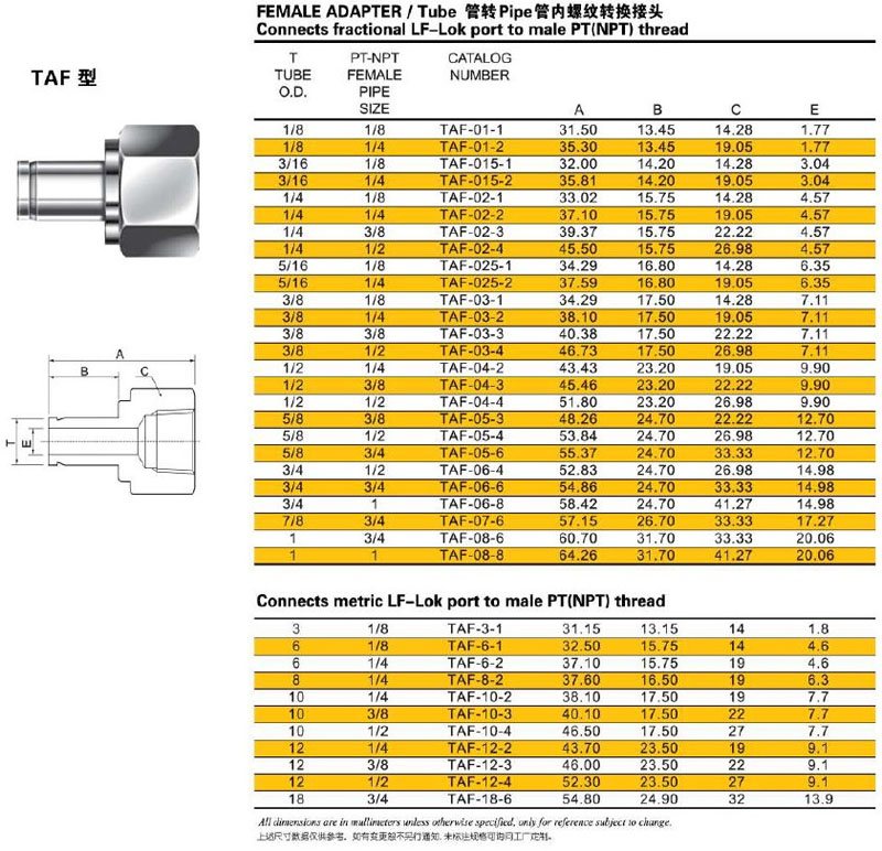 TAF-01-1,TAF-02-1,TAF-05-6,TAF-06-4,TAF-3-1,TAF-6-1,TAF-10-2,管內(nèi)螺紋轉(zhuǎn)換接頭