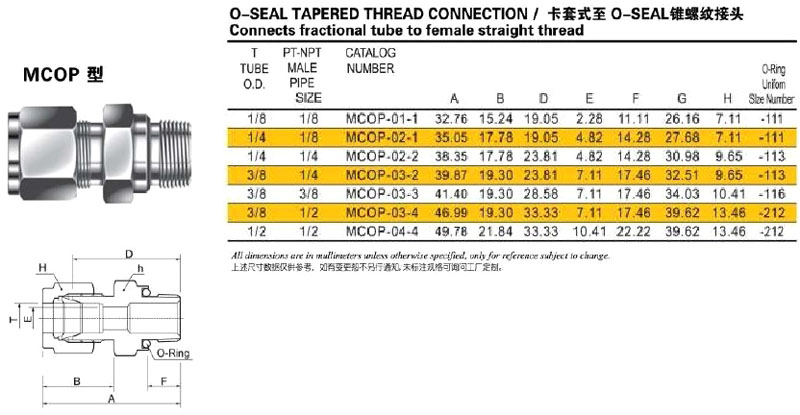 詳細(xì)信息 MCOP-01-1,MCOP-02-1,MCOP-02-2,MCOP-03-2,MCOP-03-3,MCOP-03-4,MCOP-04-4,錐螺紋接頭