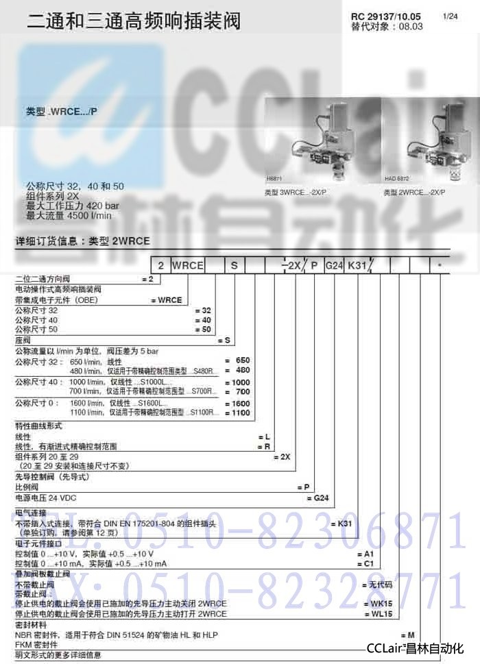 詳細信息 3WRCE50V720L-2X/PG24K31/A1M,3WRCE50E620P-2X/PG24K31/A1WK15M,二通和三通高頻響插裝閥,力士樂REXROTH,德國力士樂
