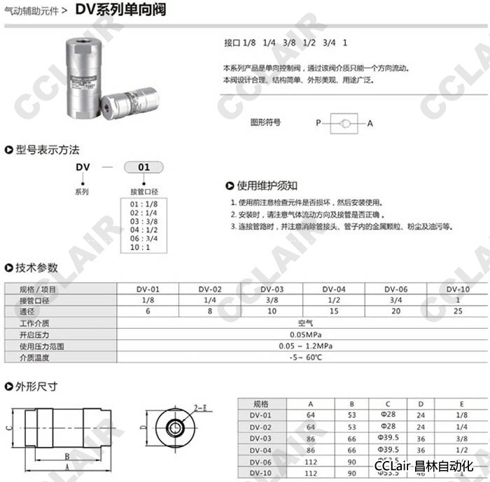 DV-01,DV-02,DV-03,DV-04,DV-06,DV-10,單向閥