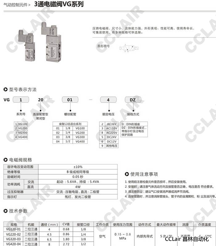VG120-03-2DZ,VG220-03-2DZ,VG320-03-2DZ,VG420-03-2DZ,