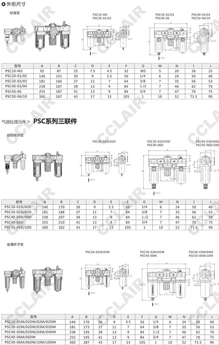 PSC40-MS,PSC40-01,PSC40-02,PSC40-03,PSC40-04,PSC40-06,PSC40-10,氣動(dòng)三聯(lián)件