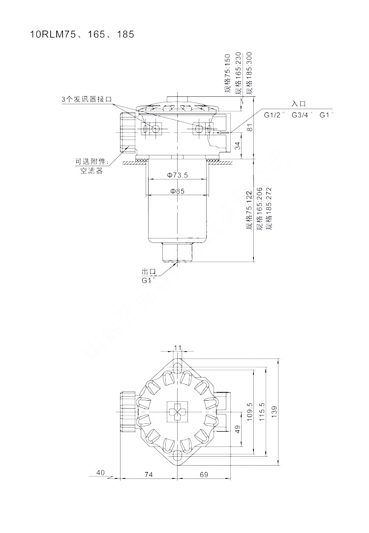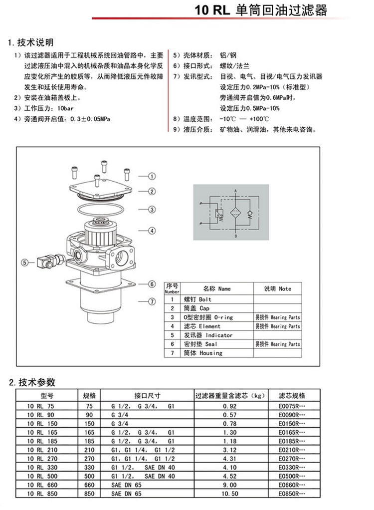 10RL75,10RL90,10RL150,10RL165,10RL185,10RL210,10RL270,10RL330,10RL500,10RL660,10RL850,單筒回油過濾器