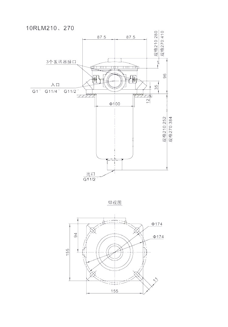 型號: 10RL75,10RL90,10RL150,10RL165,10RL185,10RL210,10RL270,10RL330,10RL500,10RL660,10RL850,單筒回油過濾器