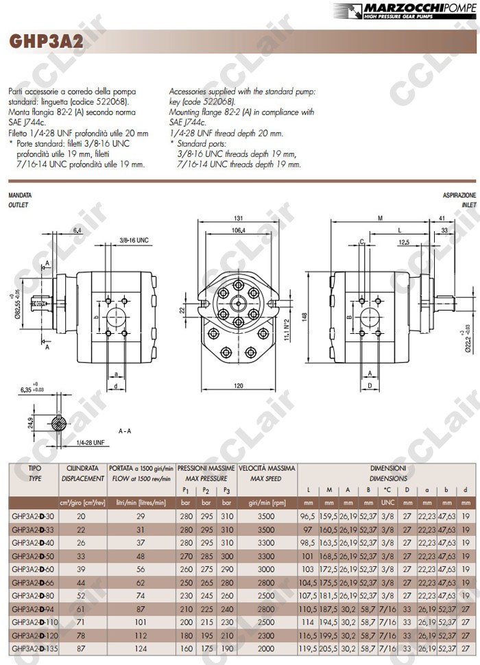 GHP3A2-D,GHP3A2-D-30,GHP3A2-D-33,GHP3A2-D-40,GHP3A2-D-50,GHP3A2-D-60,GHP3A2-D-66,MARZOCCHI齒輪油泵