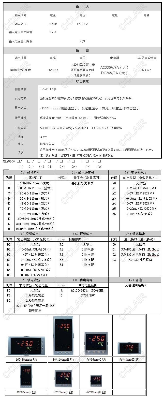 型號: MEA5100-A,MEA5100-B,MEA5100-C,MEA5100,增強型單回路數字顯示控制儀