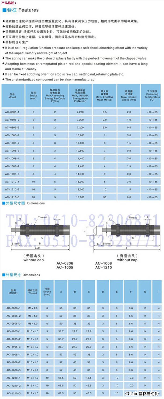 詳細信息 AC-0806-1,AC-0806-2,AC-0806-3,AC-1005-1,AC-1005-2,AC-1005-3,油壓緩沖器