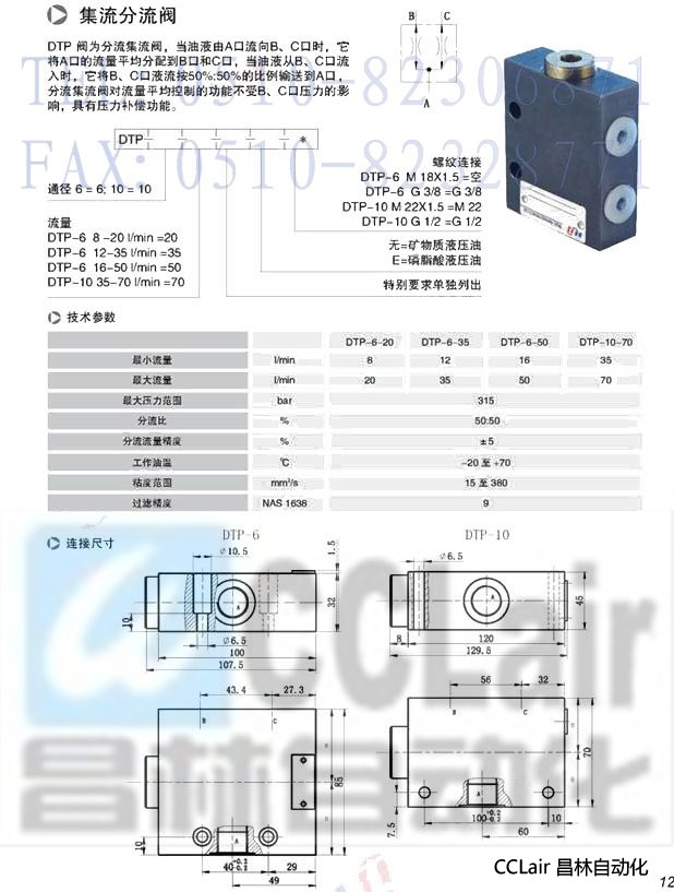 DTP-6-20,DTP-6-35,DTP-6-50,DTP-10-70,分流集流閥