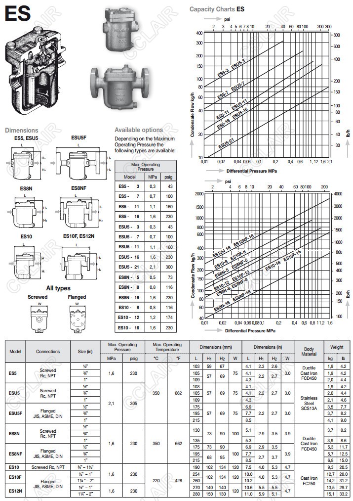 詳細(xì)信息 ES5,ESU5,ESU5F,ES8N,ES8NF,ES10,ES10F,ES12N,miyawaki倒吊桶式蒸汽疏水閥