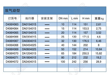 D406H063,D406H064,D406A068,D406H069,D406H070,D406A071,D406H072,406型雙氣動自動球閥OMAL
