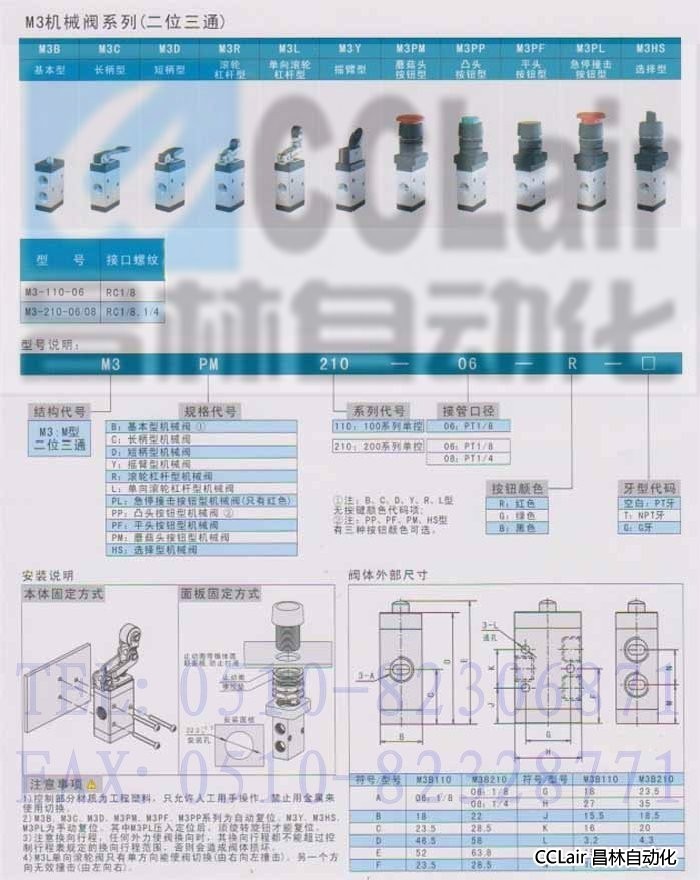 M3L110-06,M3PL110-06,M3PP110-06,M3PF110-06,二位三通機械閥