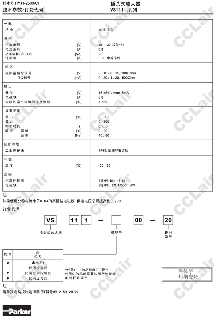 產(chǎn)品: 瀏覽次數(shù):906VS111-000-20,VS111-100-20,VS111-200-20,VS111-800-20,Parker插頭式放大器