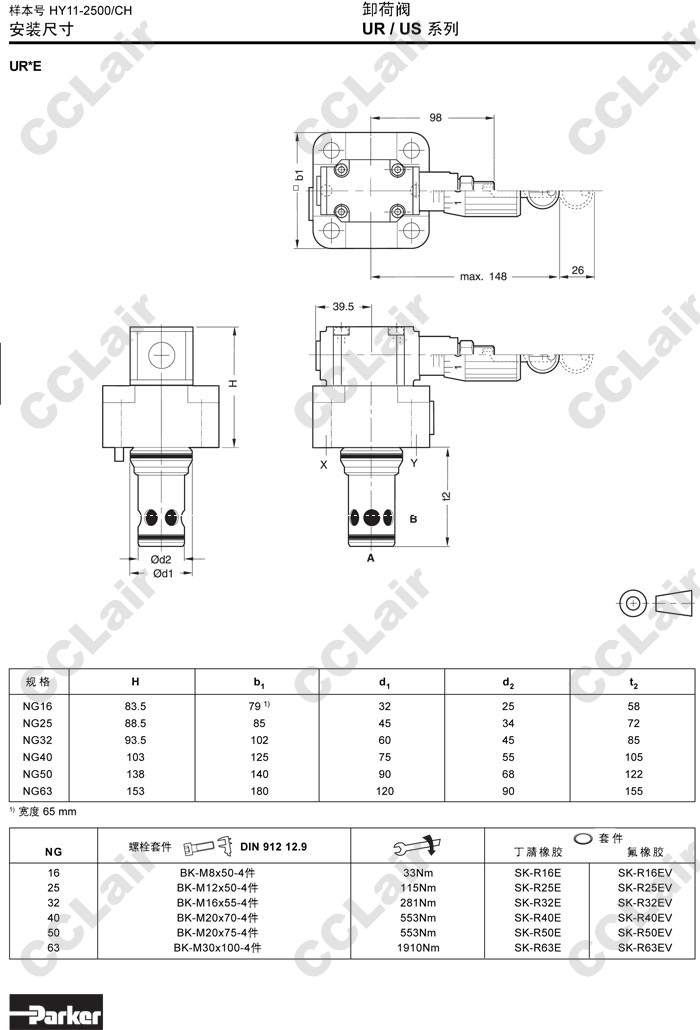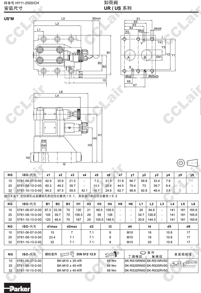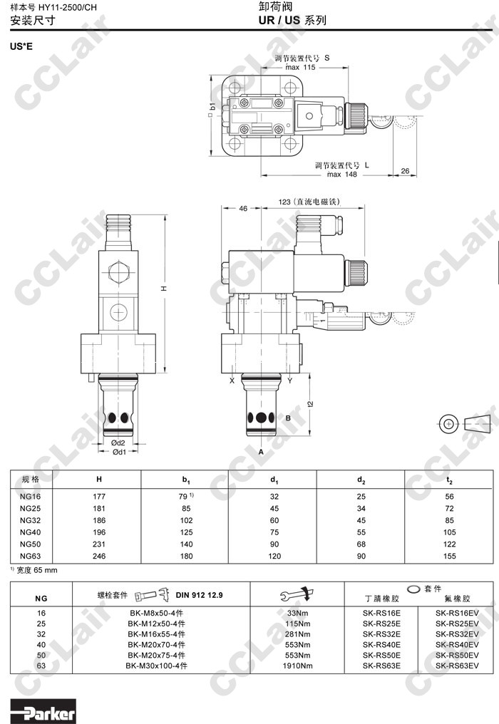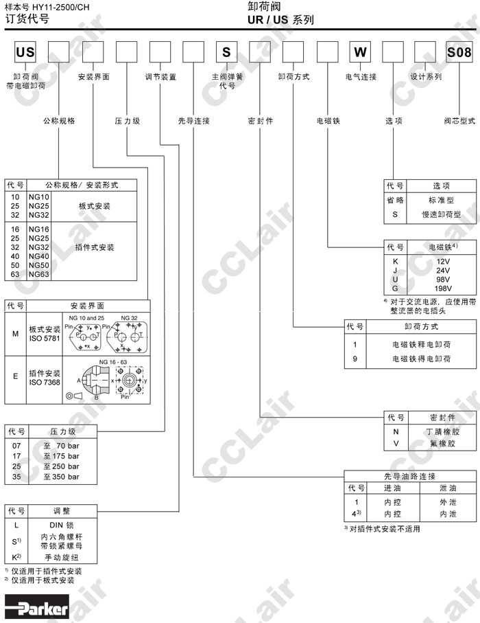 US10M,US25M,US32M,US16E,US25E,US32E,US40E,US50E,US63E,US10M07L1SN,Parker卸荷閥