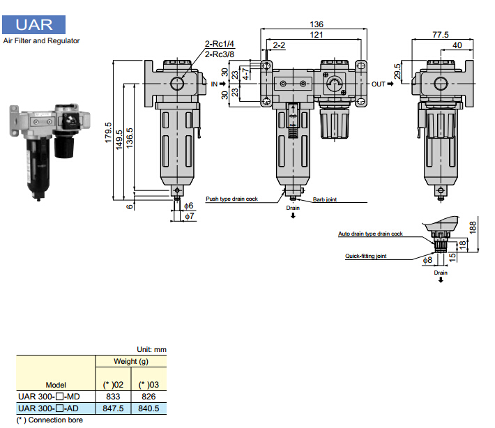 UAR300-02-MD,UAR300-03-MD,UAR300-02-AD,UAR300-03-AD,PISCO二聯(lián)件