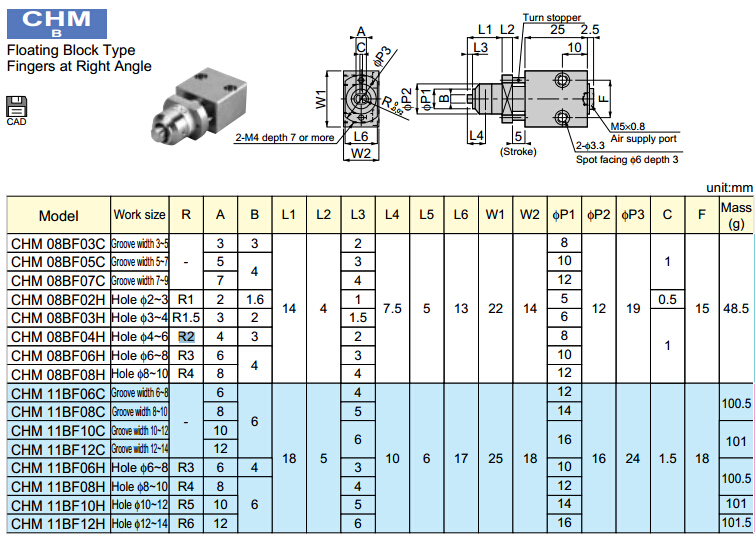 CHM08BF03C,CHM11BF06C,CHM08BF05C,CHM11BF08C,CHM08BF07C,CHM11BF10C,CHM08BF02H,PISCO開放夾持器