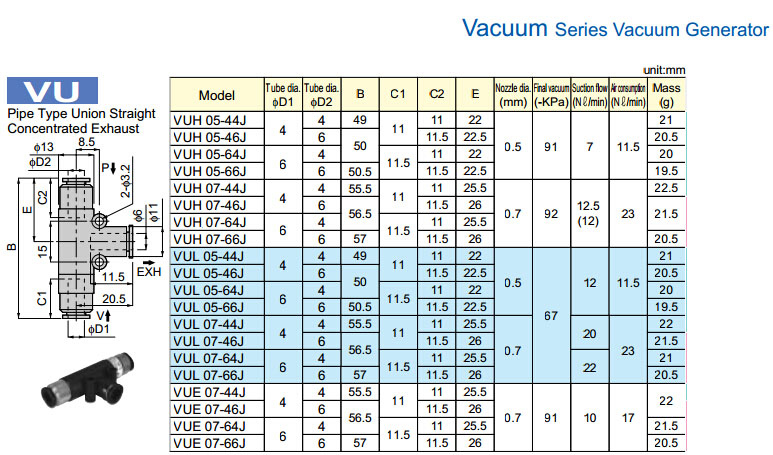 首頁 > 產(chǎn)品&解決方案 > VUH05-44J,VUH07-44J,VUL05-44J,VUL07-44J,VUE07-44J,VUL05-66J,VUH07-64J,PISCO真空發(fā)生器