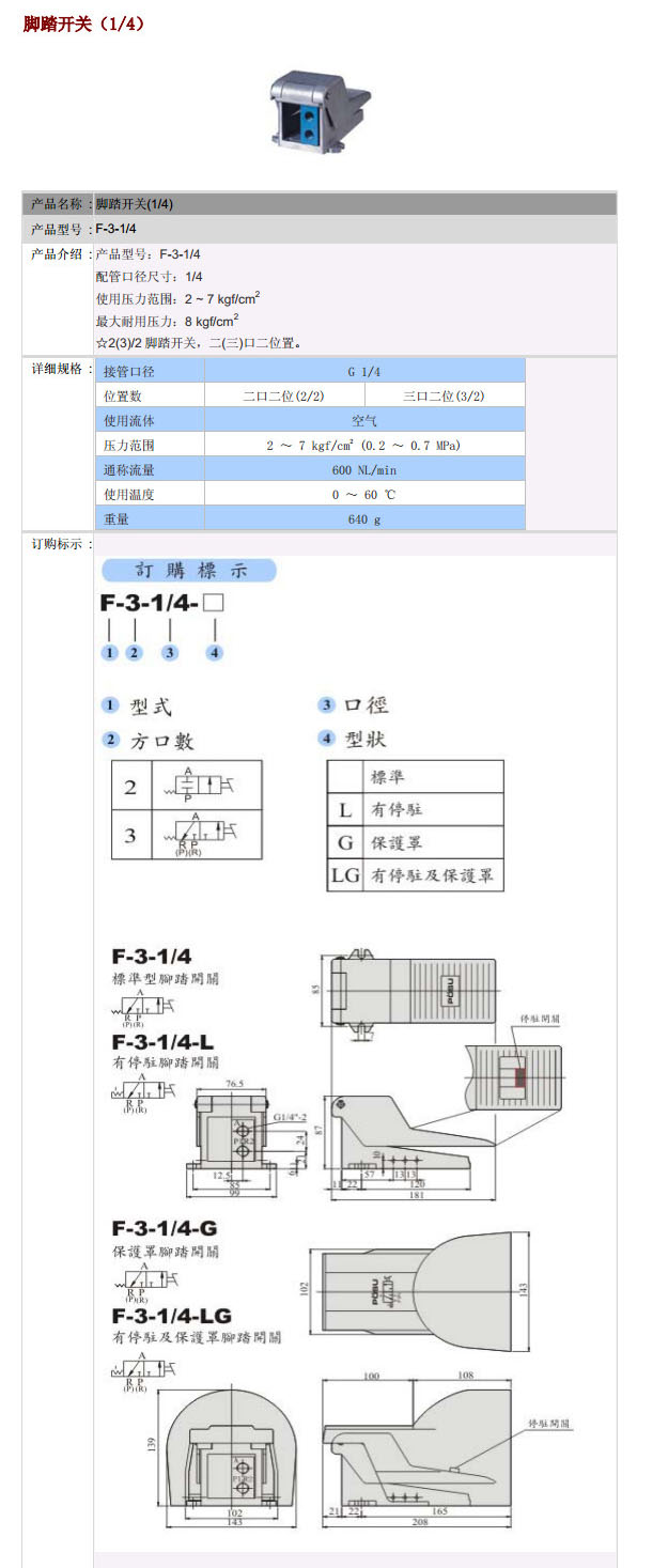 F-3-1/4,F-3-1/4-L,F-3-1/4-G,F-3-1/4-LG,PST腳踏開關